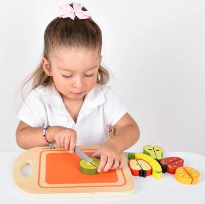 Creativo juego de frutas para cortar, Set de 8 piezas de madera. Las piezas bellamente pintadas muestran detalles realistas. No representa riesgo para los niños pues el cuchillo es de madera sin filo. Las frutas están unidas por velcro. Tamaño de la Tabla 27x21x3 cm. Contiene: 6 frutas, 1 tabla para picar y 1 cuchillo. REGALO PERFECTO PARA NIÑOS DE 3 A 5 AÑOS