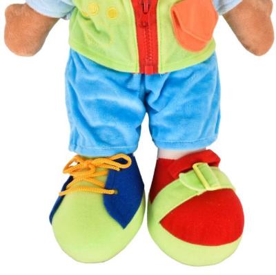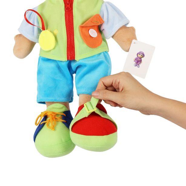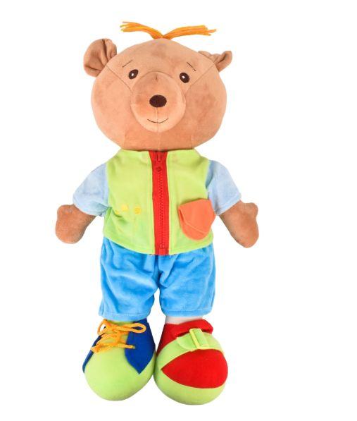 Diversión educativa con este lindo oso didáctico. Es el compañero perfecto para explorar el mundo de las prendas de vestir de forma entretenida y educativa. Actividades que se pueden realizar abotonar, atar agujetas, cerrar cierres y mucho más, este oso ofrece una experiencia de aprendizaje integral.