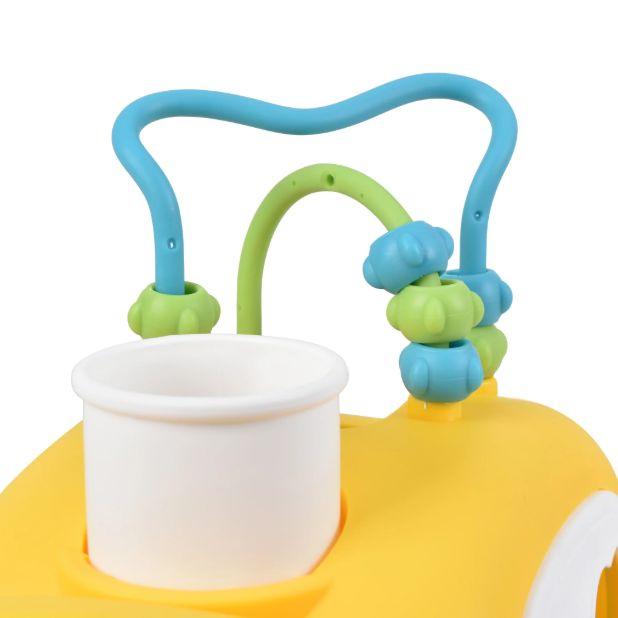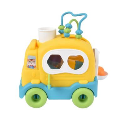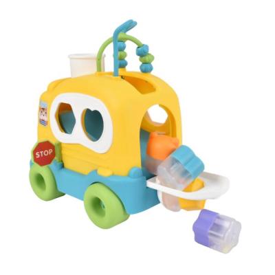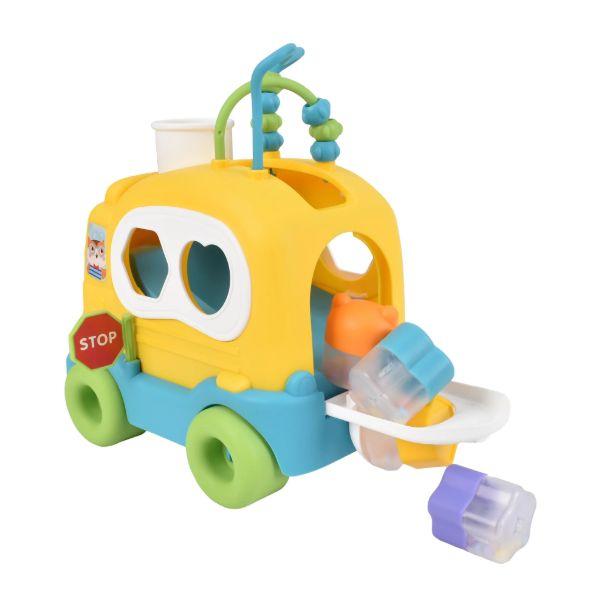 Contiene un transporte en forma de camión, 4 sonajas de diferentes figuras, 2 alambres con 7 cuencas. Tamaño del MiniBus: 10 cm x 26 cm x 18 cm.